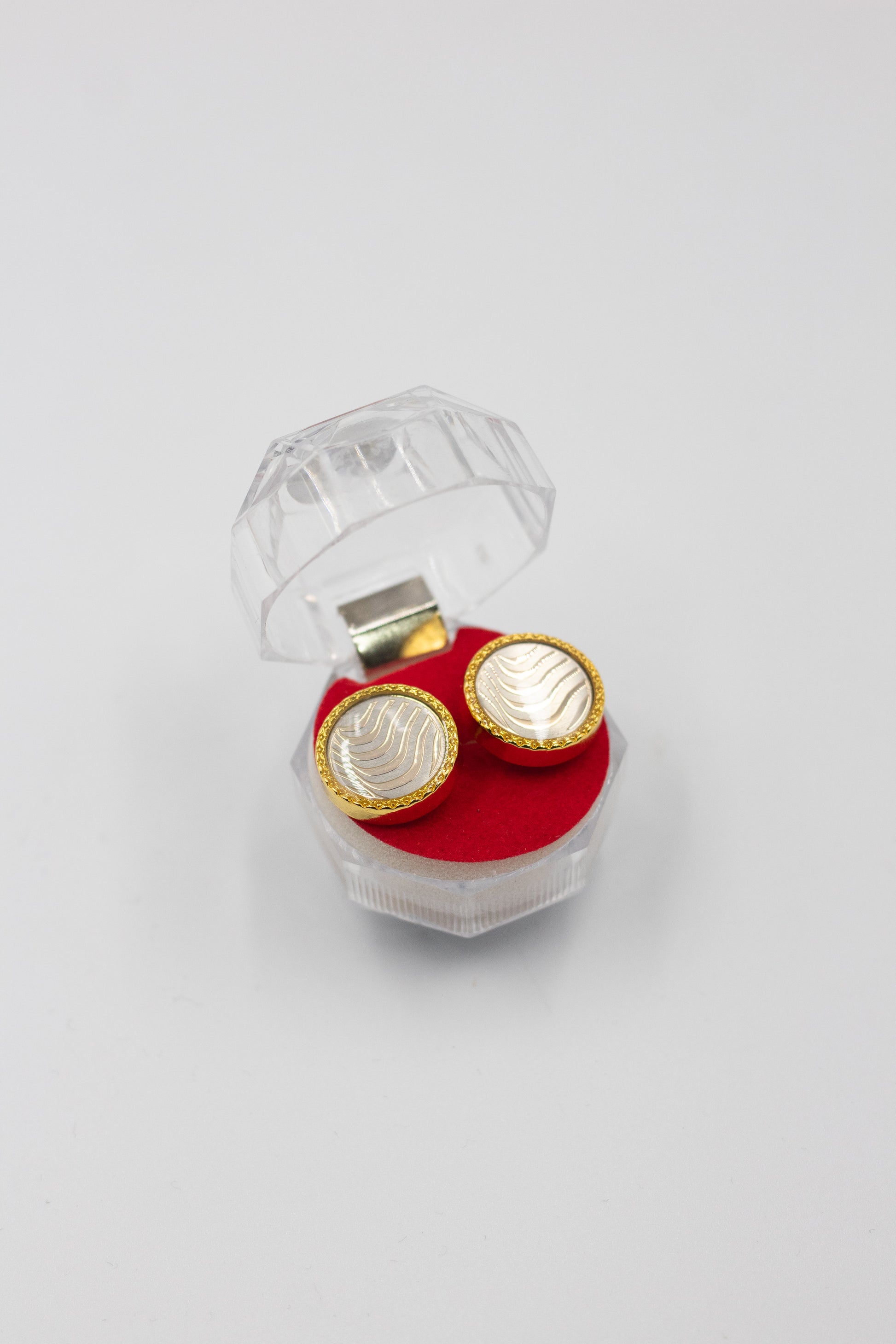 Realza tu elegancia con esta mancuernilla dorada que presenta un detalle interno aperlado con textura. Su diseño sofisticado añade un toque de distinción perfecto para eventos formales o para elevar tu estilo diario con refinamiento y personalidad.